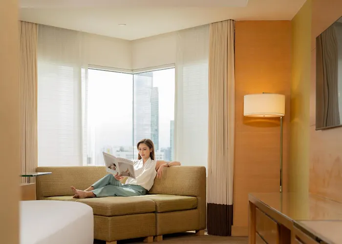 Les chambres non-fumeur de l'hôtel de 43 étages sont certaines d'entre elles équipées du Wi-Fi et d'une TV à écran plat avec des chaînes satellite. Elles comprennent également des salles de bains privées équipées d'un sèche-cheveux et d'un bonnet de douche. Quelques chambres ont un décor joli. Dotées d'un sauna et d'un bain à remous, certaines salles de bains sont équipées d'un sèche-cheveux et des draps de bain.